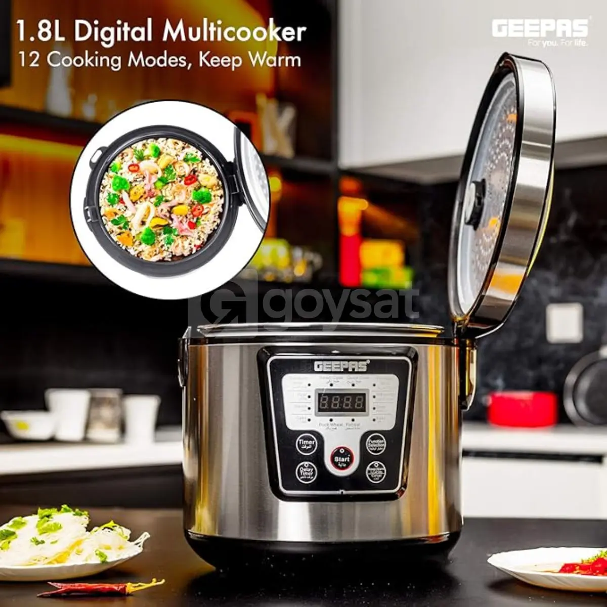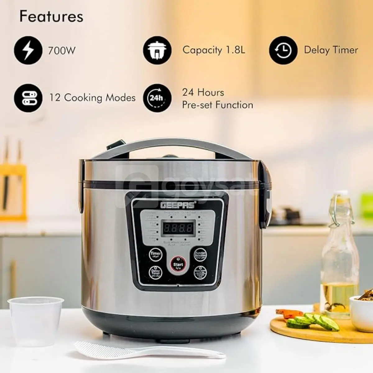 Geepas 700W 12’si 1 Arada Elektrikli Düdüklü Tencere, Buharlı Pişirici 1.8L Dijital Çok Amaçlı Pişirici Pişirme Modları, Siyah/Gümüş, , Çok Amaçlı Pişirici